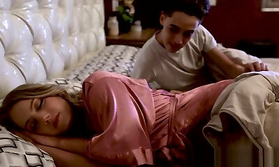 Nasty mommy is masturbating next to her horny step- son and enjoying every 2nd of it