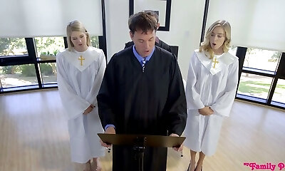 Sinful stunner Haley Reed goes wild on a firm pole in front of priest