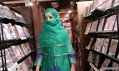 Super-hot Pakistani chick Nadia Ali sucks massive dick in the glory hole room
