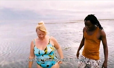 Ash-blonde with tattoo and big milkings on a bed having sex with a black m...